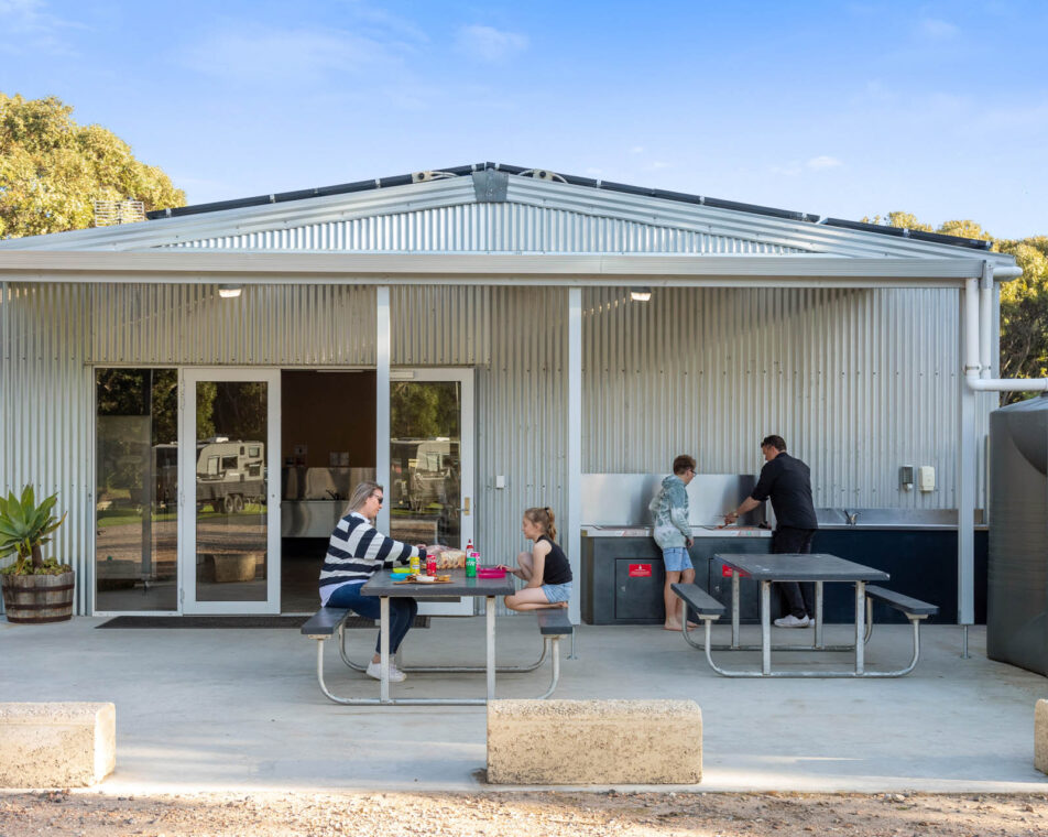 Experience the convenience of our two generously sized Camp Kitchens nested in our park, fully equipped with ovens, sinks, fridges, tables and chairs, TVs, washing machines, and dryers. Take advantage of the spacious undercover verandah, shielding you from the elements as you enjoy these amenities. Laundry facilities aren’t just limited to the Camp Kitchens; you’ll find them in two other amenities blocks throughout the park. The machines are coin-operated, accepting both $2 and $1 coins. If you need change, simply swing by the office.